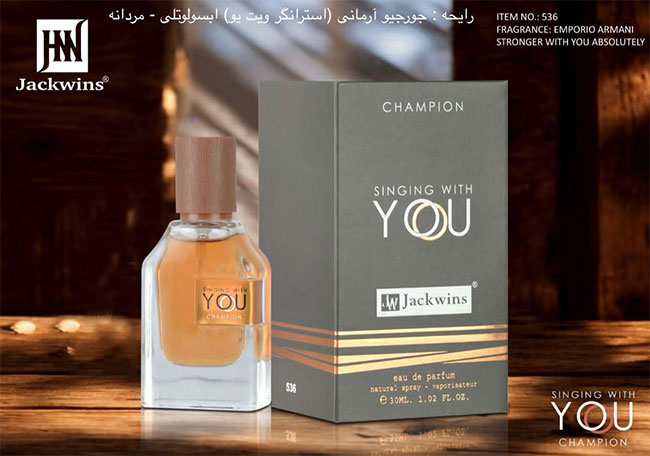 عطر ادکلن مردانه جورجیو آرمانی آرمانی استرانگر ویت ابسولوتلی یو جکوینز (Jackwins Chapion Singing With You) حجم 30 میل رایحه گرم ، کمی تلخ . این محصول نمونه شرکتی ادکلن جورجیو آرمانی آرمانی استرانگر ویت یو ابسولوتلی اورجینال Giorgio Armani Emporio Armani Stronger With You Absolutely می باشد.